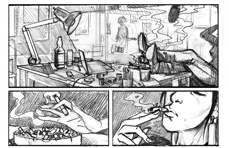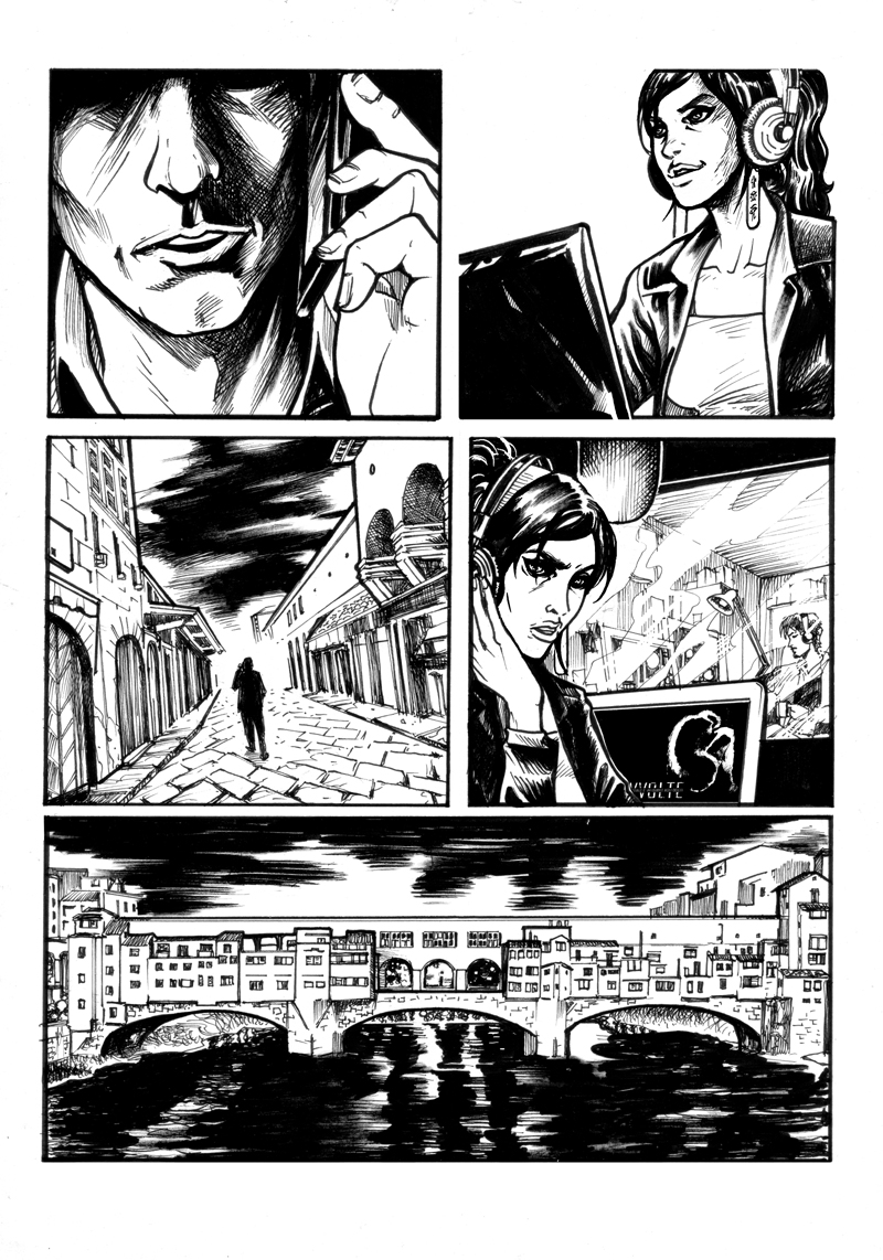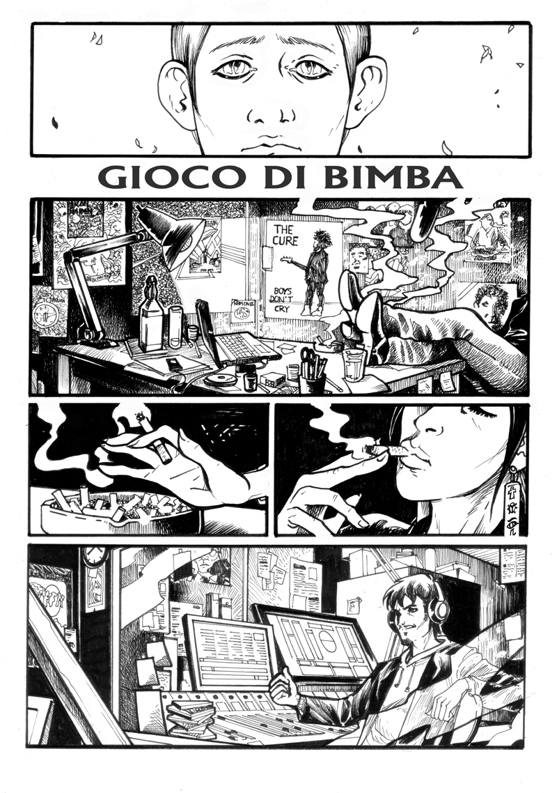 Galleria con tutte le nove tavole complete a china senza fumetti. La storia “Gioco di bimba”, sceneggiata da Marco scali, è composta da 9 tavole in bianco e nero a china ed è stata pubblicata a novembre del 2014 sull’albo speciale “L’Insonne: 20 anni” uscito in occasione di Lucca Comics per le Edizioni Arcadia.